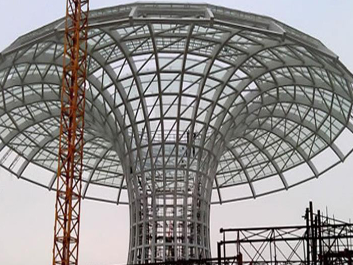 二、球形网架结构因其结构新颖,受力合理,自重轻、用钢量低等优点。如大型体育场馆球形呼伦贝尔螺栓球网架、公共场馆球形网架、电厂呼伦贝尔螺栓球网架、水泥工业球形网架、仓储物流球形网架、呼伦贝尔干煤棚工业球形网架、呼伦贝尔收费站呼伦贝尔加油站球形网架、展览中心、影剧院、商场、航站楼、候车厅、工厂呼伦贝尔车间、仓库、电视塔等球形螺栓球节点网架。国内球形网架结构主要分为:呼伦贝尔焊接球节点网架及螺栓球节点网架两种。螺栓球节点网架其构件工厂内加工量较大,现场安装便捷,适用于现场工期紧,呼伦贝尔施工条件、用电量受制约,网架形状复杂、呼伦贝尔杆件定位困难的异形结构。螺栓球节点球形网架系统基本由呼伦贝尔杆件、螺栓球、支撑支座等组成。按照节点形式可分为交叉呼伦贝尔桁架体系、四角锥体系、三角锥体系等。支撑方式多为固定支座支撑。对于大面积、大跨度及有特殊受力或伸缩要求的网架结构可采用橡胶支座、滑移支座、球铰支座等支撑形式,以满足结构自身的受力稳定、均衡,便于内力释放等设计要求。